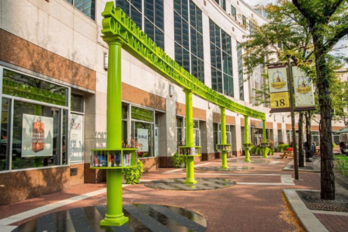 Conceptul aparține unui artist american din Indianapolis: amplasarea în orașul american, în spațiul public, a unor corpuri de bibliotecă unice create de diverși designeri locali. Cărțile rânduite în aceste opere de artă provin fie de la Indianapolis Public Library, fie din donații, iar locuitorii orașului pot împrumuta gratuit orice carte își doresc.
